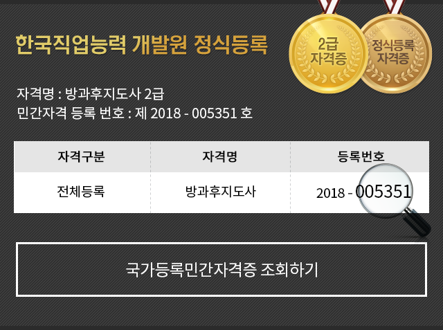 ¹æ°úÈÄÁöµµ»ç Ȱµ¿À» À§ÇÑ ÀÚ°ÝÃëµæ°úÁ¤À» ÅëÇØ ¹æ°úÈÄ ±³À°ÀÇ À̷аú Áö½ÄÀ» ½ÀµæÇϰí, ´Ù¾çÇÑ ¾Æµ¿Áöµµ Ȱ¿ë¹æ¹ýÀ» üµæ½ÃÄÑ ¹æ°úÈÄÁöµµ»ç·Î¼ÀÇ ±âÃÊÀûÀÎ Á÷¹«¼öÇà ´É·ÂÀ» ¹è¾çÇÏ´Â °ÍÀ» ¸ñÇ¥·Î ÇÕ´Ï´Ù.