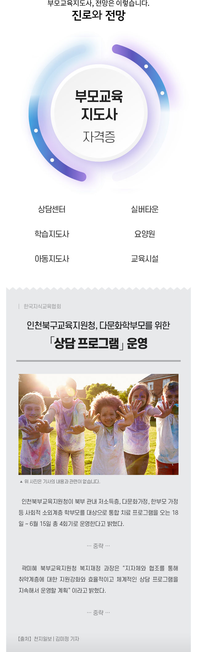 • ºÎ¸ð·Î ÇÏ¿©±Ý ÀÚ³àÀÇ ¹ß´Þ ¹× ¼º°øÀûÀÎ ¼ºÀåÀ» À§ÇÏ¿© ,Àڳ౳À°ÀÇ Ã¥ÀÓÀ» ÀÎÁö Çϰí, ÁÖ¾îÁø Ã¥ÀÓÀ» ¼öÇàÇϴµ¥ ÇÊ¿äÇÑ Áö½ÄÀ» ½ÀµæÇÏ¿© ºÎ¸ð·Î½á ¿ä±¸µÇ´Â ŵµ¸¦ Áö´Ò ¼ö ÀÖµµ·Ï µµ¿ÍÁÖ´Â Àü¹®ÀûÀÎ ºÎ¸ð±³À°Áöµµ»ç·Î ¾ç¼ºÇÏ´Â °ÍÀ» ¸ñÇ¥·Î ÇÕ´Ï´Ù.