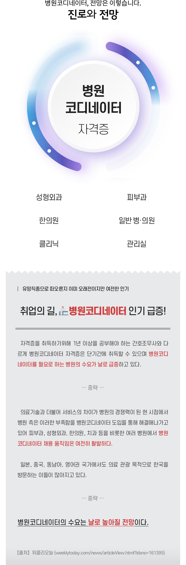 º´¿øÄÚµð³×ÀÌÅͶó´Â ÀǷἺñ½º Àü¹®°¡·Î¼ÀÇ ±âº»ÀûÀÎ Á¤ÀÇ¿Í ¿ªÇÒ, Àü¹ÝÀûÀÎ ¾÷¹«, °í°´ ÀÀ´ë, °í°´ »ó´ã µî ½ÇÁ¦ ½Ç¹«¿¡ µµ¿òÀ» ÁÙ ¼ö ÀÖ´Â ÀÌ·ÐÀ» Á¦°øÇϸç, ÀÇ·áÁø°ú ȯÀÚ ¹× °í°´µé¿¡°Ô ¹àÀº À̹ÌÁö¸¦ ½É¾îÁÖ°í °Ç°ÇÏ°í ¼º¼÷ÇÑ ÄÚµð³×ÀÌÅÍ·Î ¼ºÀåÇÒ ¼ö ÀÖµµ·Ï ÇÏ´Â °Àǰ¡ ÀÌ·ç¾îÁý´Ï´Ù.