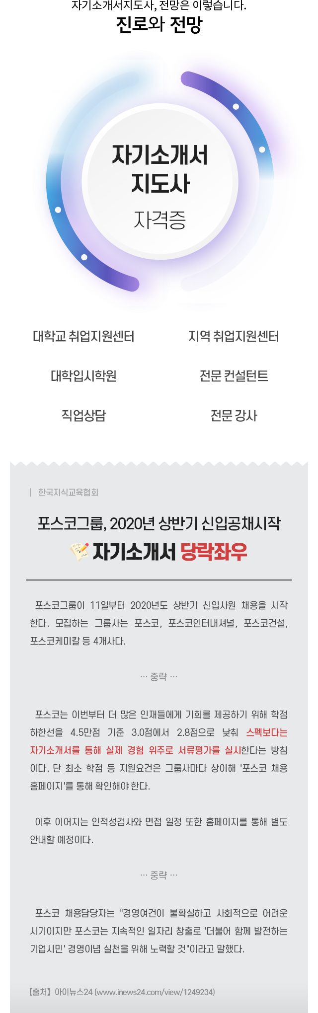 Áö¿øÀÚ°¡ ÀÛ¼ºÇÏ¿´°Å³ª ÀÛ¼ºÇϰíÀÚ ÇÏ´Â ÀÚ±â¼Ò°³¼ ³»¿ëÀ» Æò°¡ÇÑ ÈÄ ÇÊ¿ä ½Ã °³¼±¹æ¾ÈÀ» Á¦½ÃÇϰí Áöµµ¡¤°ÀÇÇÒ ¼ö ÀÖ´Â Àü¹®°¡·Î¼ÀÇ Áö½Ä°ú ´É·ÂÀ» °®Ãá´Ù.