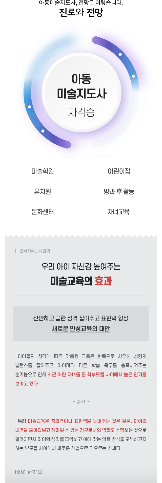 • ¾Æµ¿¹Ì¼úÁöµµÀÇ À̷аú ¿ø¸®¸¦ ÀÌÇØÇÏ°í ¾Æµ¿µé¿¡°Ô ¹Ì¼úÀ» ¿Ã¹Ù¸£°Ô ÁöµµÇÒ ¼ö ÀÖ´Â ±âº»ÀûÀÎ ¹Ì¼ú±â¹ý°ú ±×¸²Ç¥Çö´É·Â µî ¾Æµ¿¹Ì¼úÁöµµ Àü¹®°¡ ¾ç¼º±³À°À» ¸ñÀûÀ¸·Î ÇÕ´Ï´Ù.